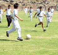 There is outdoor provision for tennis, basketball, football, skating, cricket (with practice nets) and volleyball. The school campus also has 2 small playground for LKG & UKG classes.